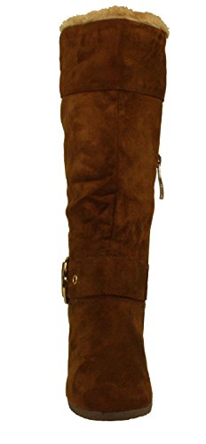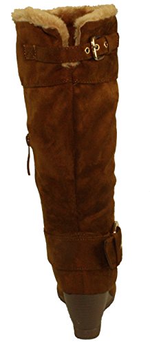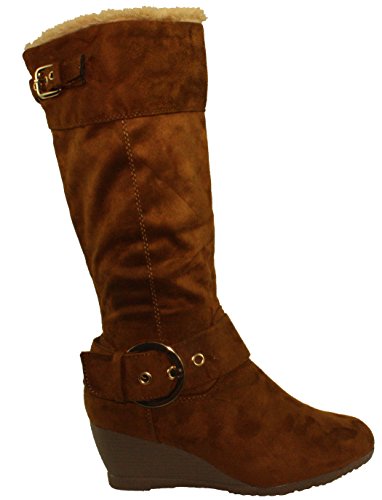 DbDk Women's Monicay-1 Faux Suede Round Toe Buckled Wedge Heel Mid-Calf Boots