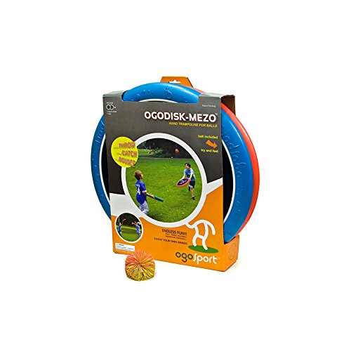 Studio : OGO SPORT LLC Publisher : OGO SPORT LLC Binding : Kitchen Product Description A hand trampoline for balls: throw, catch, bounce! · Mezo combines a large target area for easy bouncing with a thinner handle for smaller hands. · Bounce any ball -- for summer fun, try it in the pool with water balloons! · Newest member of the award-winning family of OgoDisks Set includes one bright-blue and one OgoOrange disk with one OgoSoft ball. EVA foam ring. Nylon-spandex membrane center. Item number - SK001. WARNING: Product rated for age 3 . Package may contain small parts. Product is not to be used as a flotation device.