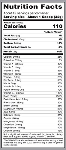 25g Protein from 100% Whey Protein Isolate (per 1 scoop serving)