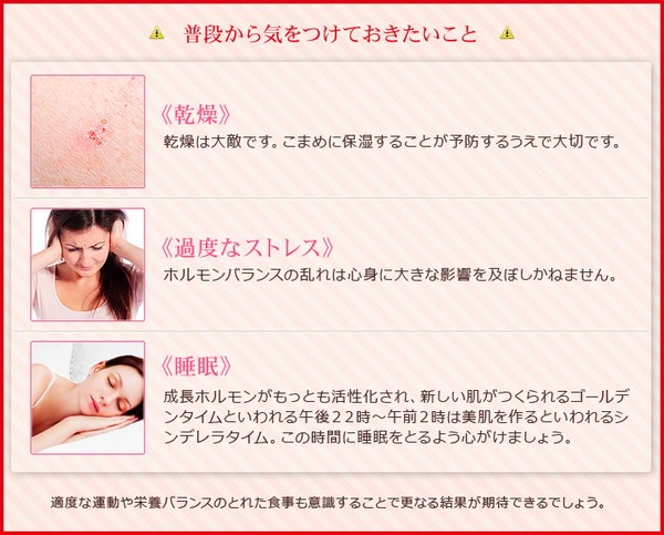 注意事項:傷、はれもの、しっしん等、お肌に異常のあるときは、お使いにならないでください。目に入らないようにご注意ください。もし入った場合はすぐに水かぬるま湯で洗い流してください。使用中、赤み、かゆみ、しげき等の異常が出た場合はご使用をおやめください。そのまま使用を続けますと、症状が悪化することがありますので皮膚科専門医等にご相談ください。ご使用後は容器の口もとをきれいにふき、必ずキャップを閉じて保管してください。極端に高温または低温の場所、直射日光のあたる場所、乳幼児の手の届く場所には保管しないでください。 |