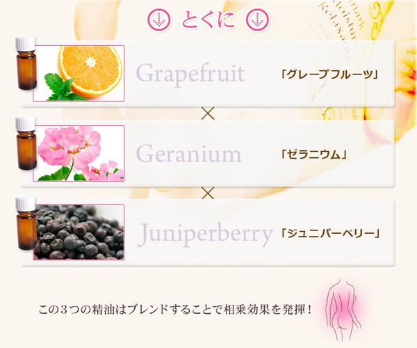 、トコフェロール、セイヨウネズ果実油、ユーカリ油、ゼラニウム油、EDTA-2Na |
