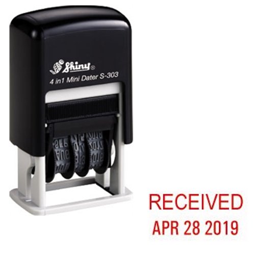 Shiny Self-Inking Rubber Date Stamp - RECEIVED - S-303 - RED INK (42511-R-RECEIVED)