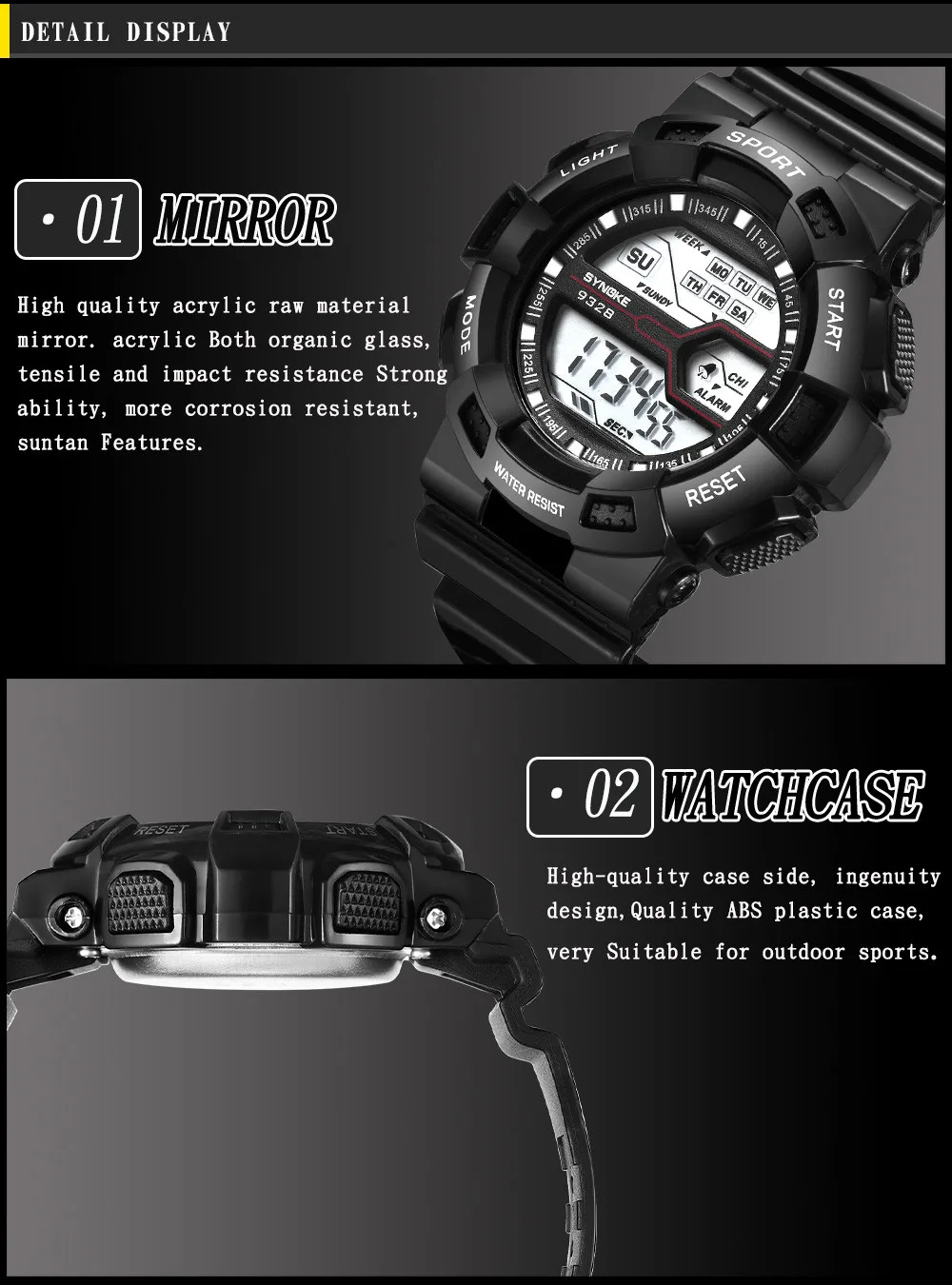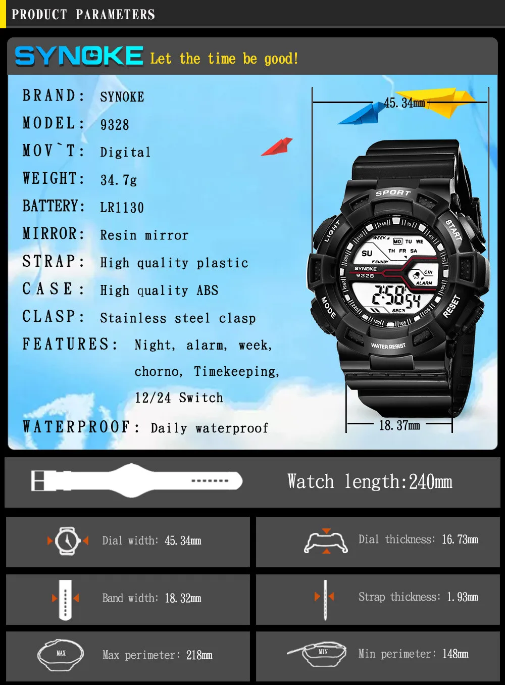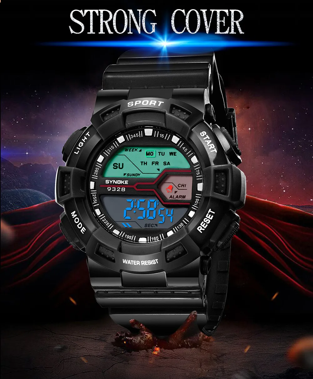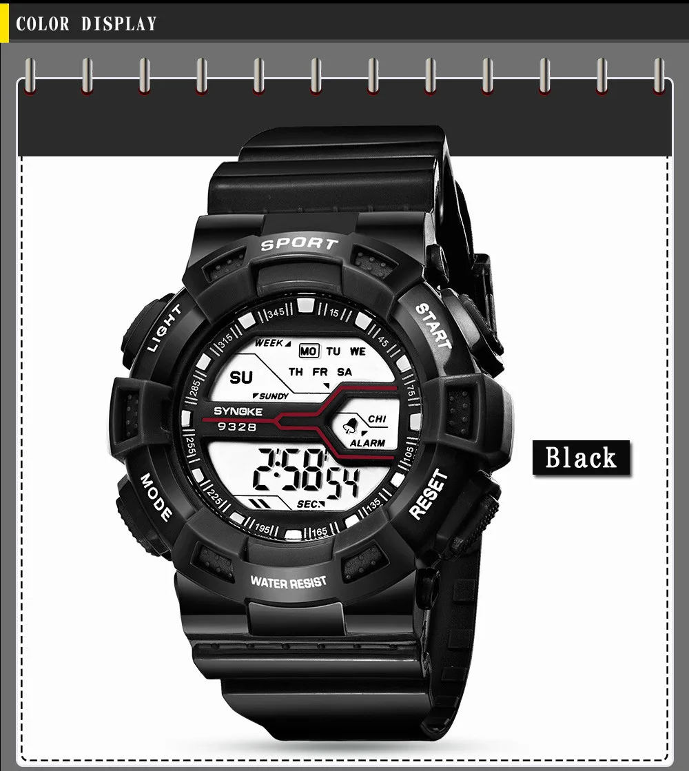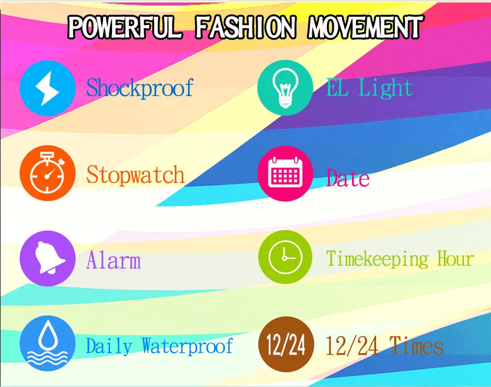 Feature:Water Resistant,LED display,Stop Watch,Back Light,Week Display