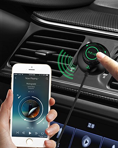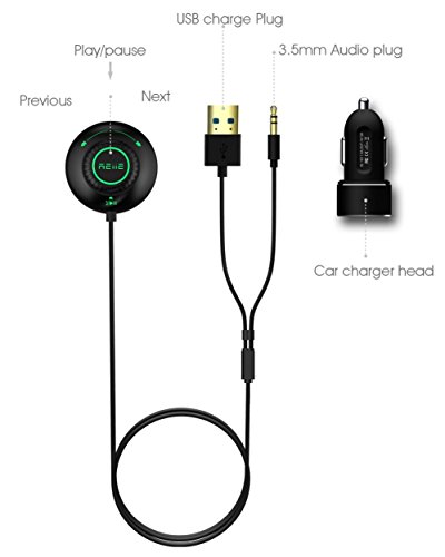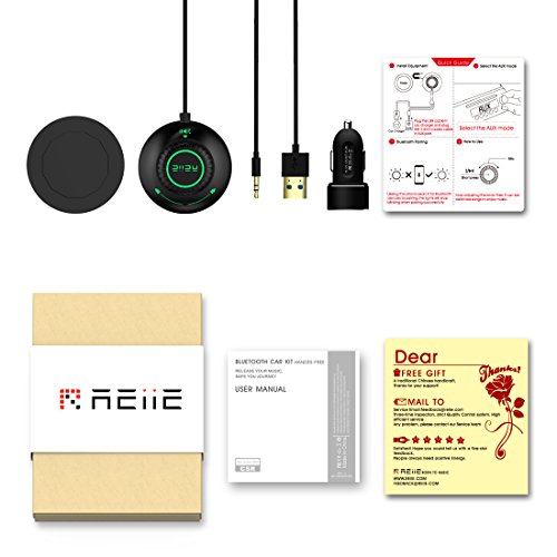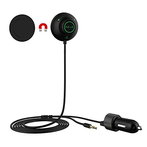 [One Key Control]Magnetic Mounts REIIE Bluetooth 4.1 Car Kit with 3.5mm Aux-In Jack,Wireless Calling&Music Streaming,Multi-Point Access,Siri/ Voice Activation,Noise Cancelling,Dual USB Charger