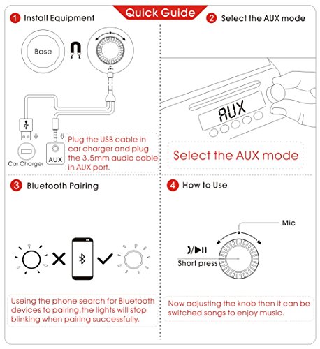 ★ Package Contents: Bluetooth 4.1 Car Kit,Dual USB Charger,Magnetic Mounts,User manual,Quick Quide,Warranty Card.Warranty policy: 12 months free reliable warranty