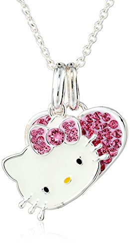 Hello Kitty Girls 2 Piece with Crystal Bow and Heart Pendant Necklace, 18"