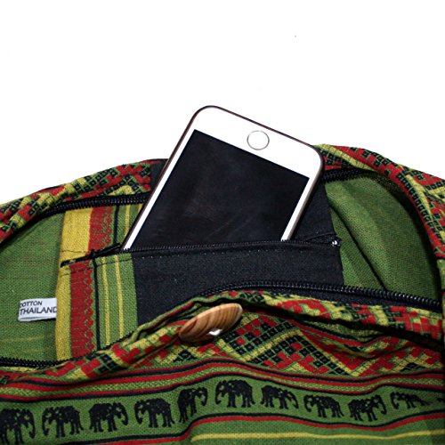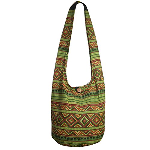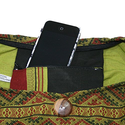 Product Description Hand made and crafted from handwoven 100% cotton, this cross-body hobo bag is a classic Thai design yet each is One of a Kind. The front and back of the bag consists of hand woven bands of lively colors with extra long shoulder straps. Wear as a cross-body bag or short tie the straps for a shoulder carry. Zippered main compartment, 0