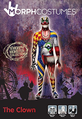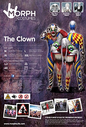 -. Binding : Apparel -. Brand : Morphsuits -. Color : Multi -. Department : mens -. Feature : OFFICAL MORPH MONSTER COSTUME: The Clown Morphsuit, living example of why nobody loves a clown. / PERFECT FOR THOSE HALLOWEEN SCARES: Clown Morphsuits are perfect for Halloween parties and those Halloween scares thanks to the photorealistic printing and the crazy grin / SIZES THAT FIT: Size based on height: Medium 5"-5"4 (150cm-162cm); Large 5"5-5"9 (163cm-175cm); XLarge 5"10-6"1 (176cm-185cm); XXLarge 6"2-6"9 (186cm-206cm) / HIGH QUALITY CLOWN COSTUME:The best printing on a body suit in the market brings this Clown Morphsuit to life. Our high quality material means a 4-way stretch, with double zips and re-enforced stitching at stress points to make sure this Clown Morphsuit lasts more than one wear. Hand wash in cold water, air dry and you're good to go again / MORPH COSTUMES: From Morphsuits, the world's most popular costume brand which you can see through, breathe through and drink through. 1.3 million Facebook followers cannot be wrong; over 2 million costumes sold. -. Genre : Skinsuits -. Label : Morphsuits -. Manufacturer : Morphsuits -. Model : MLMSCL -. MPN : MLMSCM -. NumberOfItems : 1 -. PackageQuantity : 1 -. PartNumber : MLMSCM -. ProductGroup : Apparel -. ProductTypeName : ADULT_COSTUME -. Publisher : Morphsuits -. Studio : Morphsuits -. Title : Morphsuits Monster Scary Clown Skinsuit