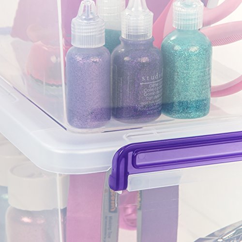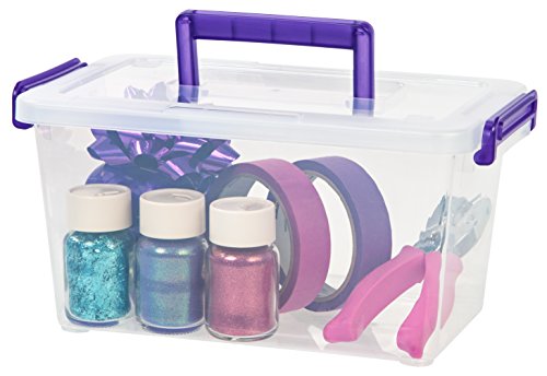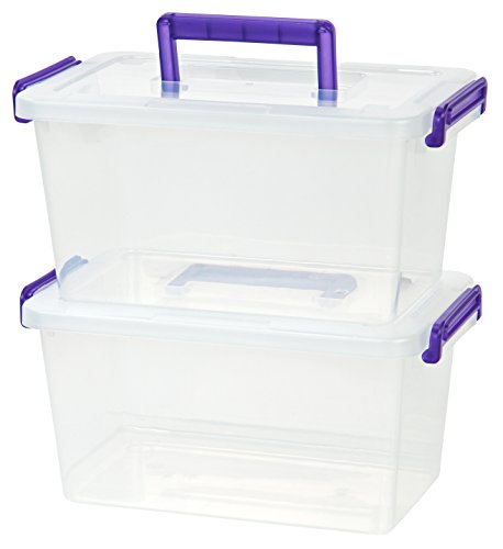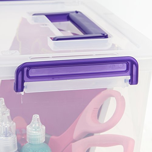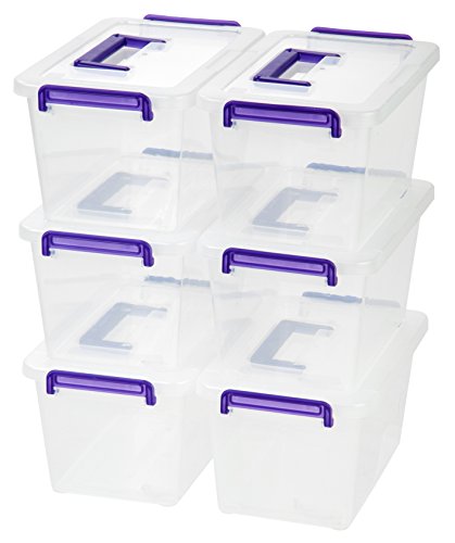 IRIS Medium Deep Modular Latching Box - Purple Handle, 6 Pack, Clear