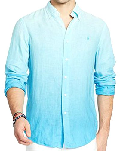 Ralph Lauren Men's Long Sleeve Linen Button-Down Shirt (L, Blue Ombre)