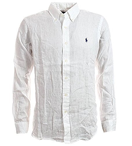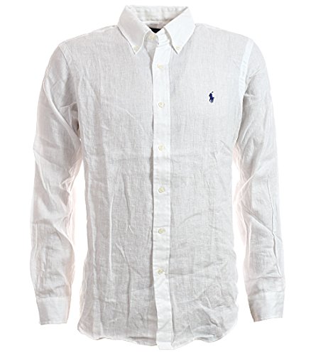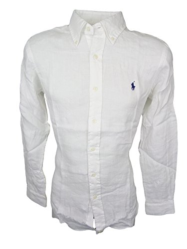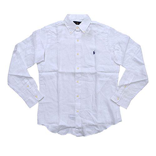 Ralph Lauren Men's Long Sleeve Linen Button-Down Shirt (M, White)