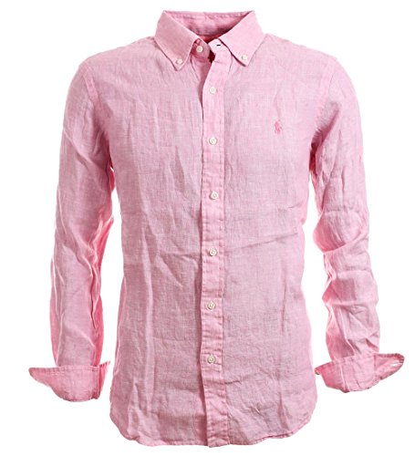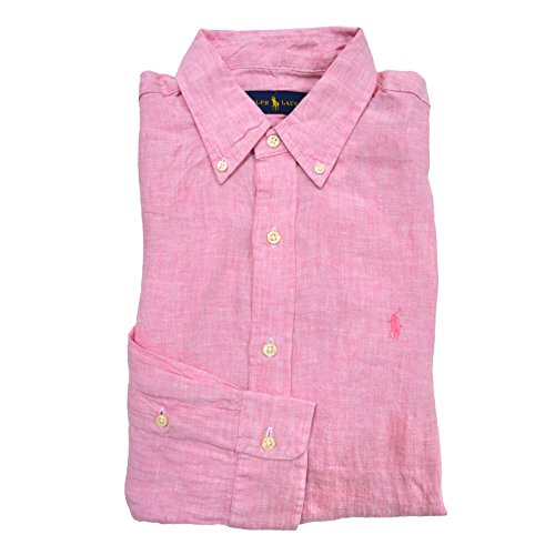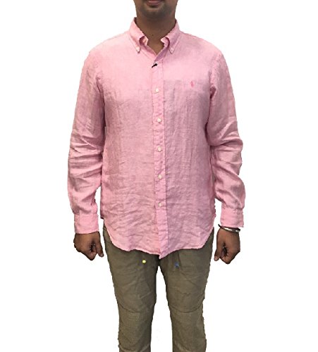 Polo Ralph Lauren Men's Longsleeve Linen Buttondown Shirt (M, Pink)