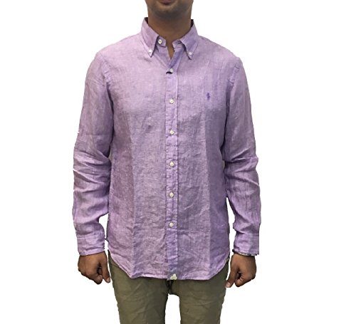 Polo Ralph Lauren Men's Longsleeve Linen Buttondown Shirt (M, Lavender)