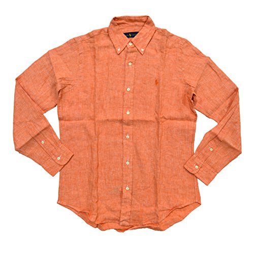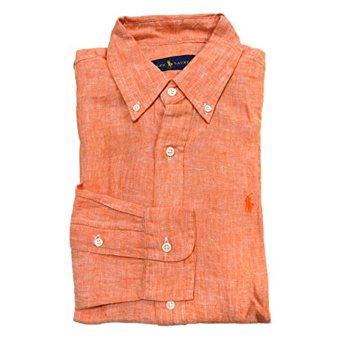 Polo Ralph Lauren Men's Longsleeve Linen Buttondown Shirt (XS, Orange)