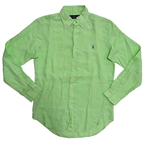 Ralph Lauren Men's Long Sleeve Linen Button-Down Shirt (S, Lime Green)