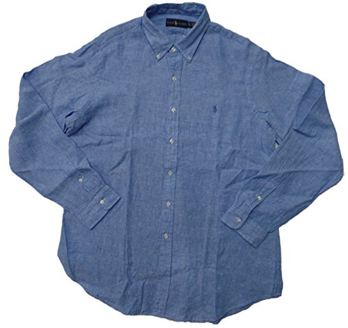 Ralph Lauren Men's Long Sleeve Linen Button-Down Shirt (XL, Sky/White)