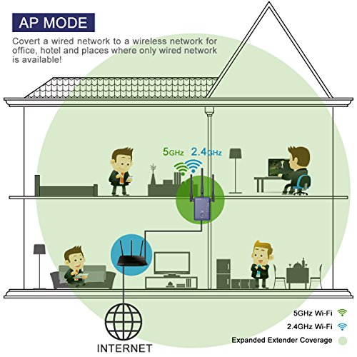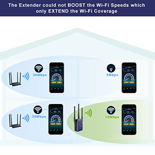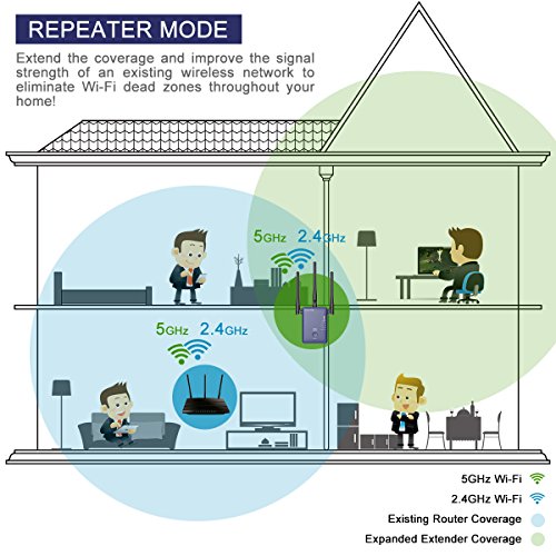 DUAL BAND WIFI THROUGHOUT YOUR HOME: Extend the coverage and improve the signal strength of an existing wireless network to eliminate Wi-Fi dead zones throughout your home with simultaneous dual band connections WiFi speed up to 5GHz 433Mbps + 2.4 GHz 300Mbps