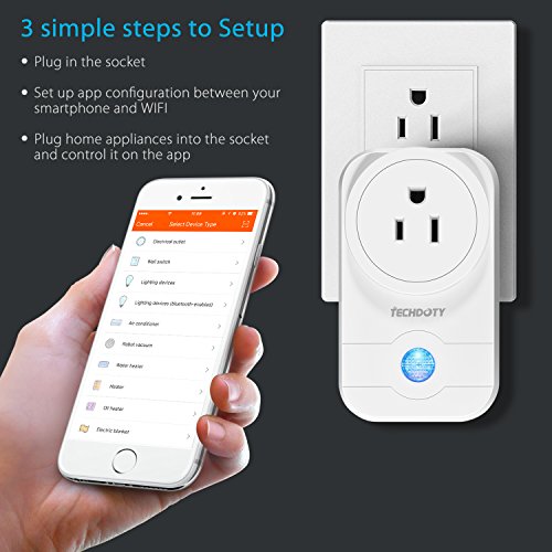 TECHDOTY Wi-Fi Smart Socket Outlet US Plug, Works with Amazon Alexa and Google Home, Remote Control Your Electronics from Anywhere