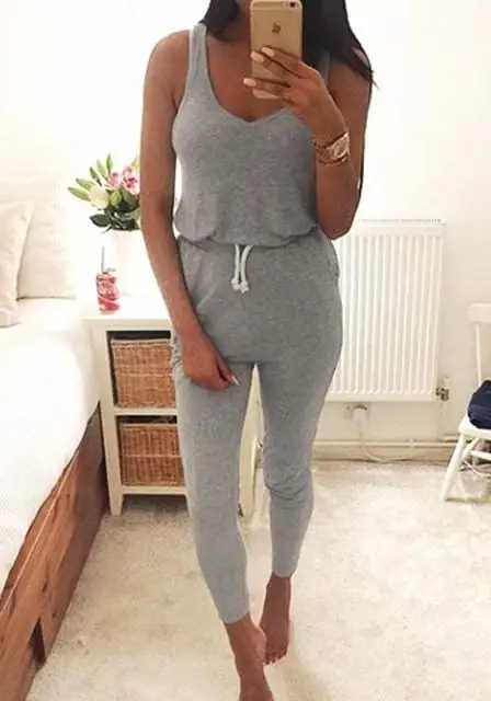 Low Cut Rompers Womens Jumpsuit: Long Pants Playsuit Strap Pocket