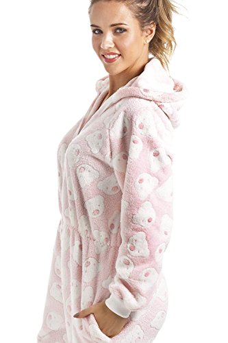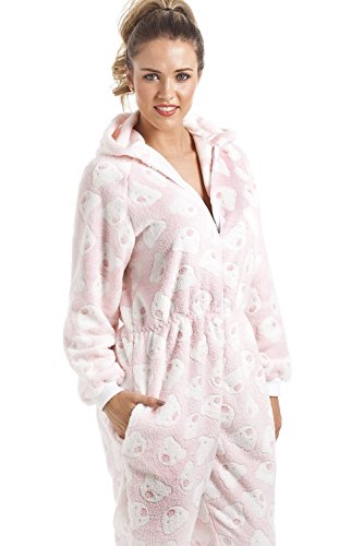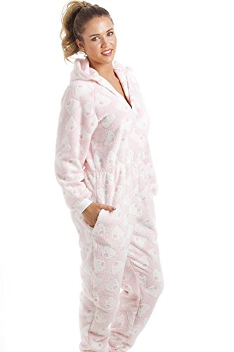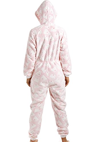 -. Feature : Wunderbar weicher Fleece-Einteiler in Rosa / Mit einer Kapuze und zwei Taschen / Elastische Bündchen an den Füßen und Ärmeln in Weiß / Mit weißem Reißverschluss vorne / Weißes eingestricktes Bärenmuster. Aus extraweichem Coral-Fleece in Großbritannien hergestellt