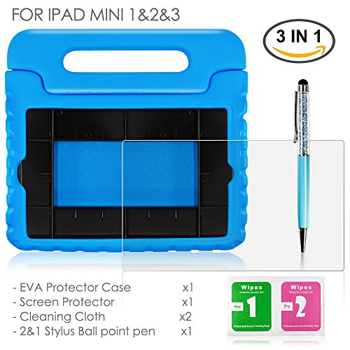 Protective Case for iPad Mini 1 2 3 with Screen Protector and Stylus, AFUNTA Shockproof Convertible Handle Stand EVA Case, PET Plastic Cover and Touch Pen for Tablet Apple iPad Mini - Blue