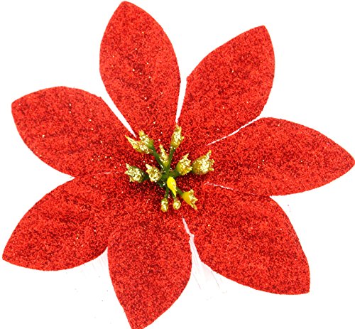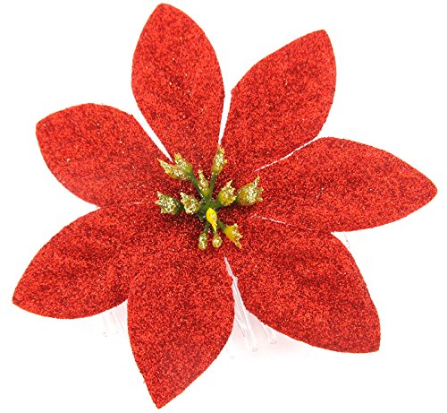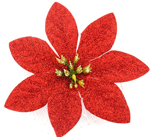 (oceansEdge11)/Accessories/Hats/DIRECT FROM USA/3 1/2" Poinsettia Red Glitter Poly Silk Flower Hair Comb