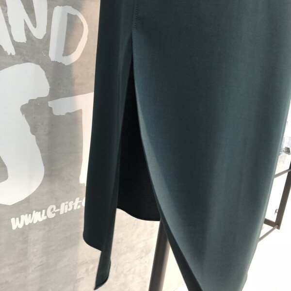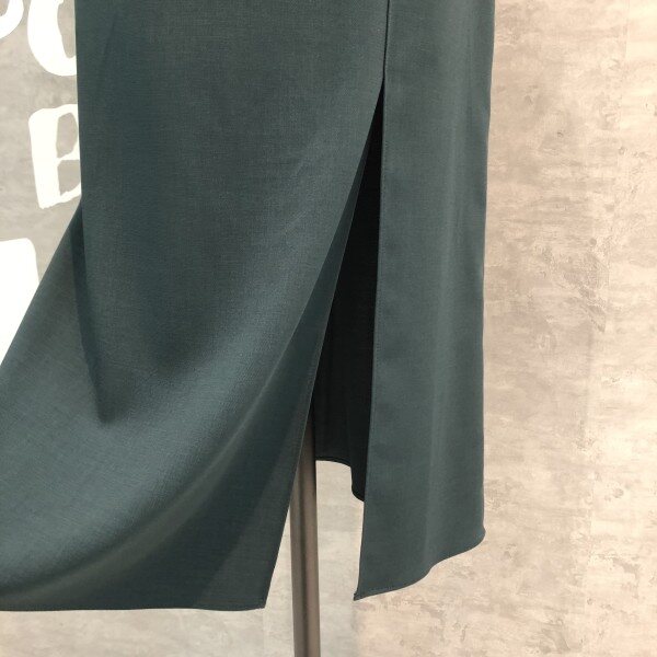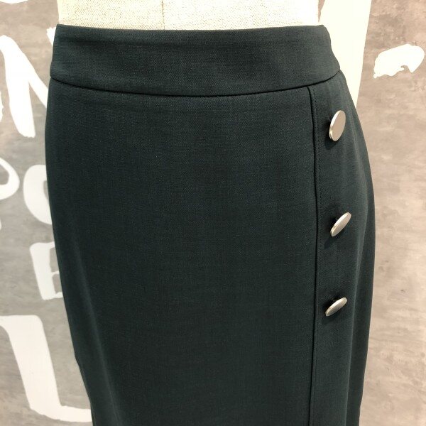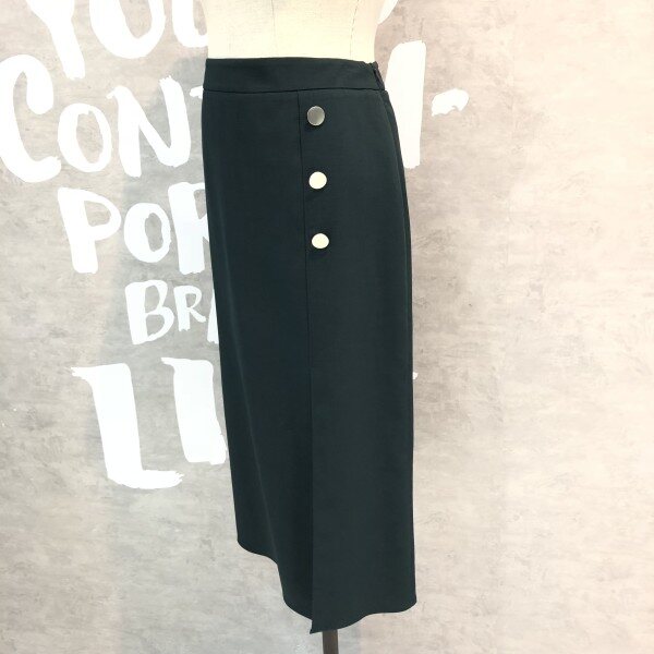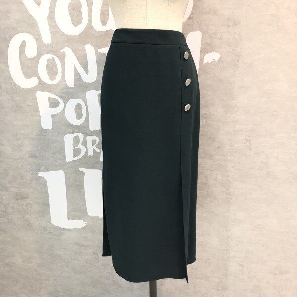 랩라이크 실루엣과 슬릿 디테일이 여성스러운 버튼 포인트 미디 스커트입니다