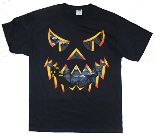(Halloween)/Men/T-Shirts/DIRECT FROM USA/Halloween Mens Black Jack-O-Lantern Haunted House Graphic T-Shirt
