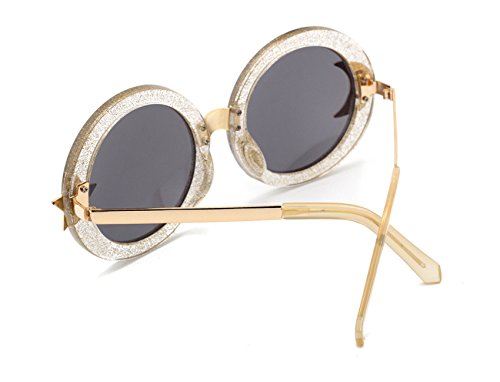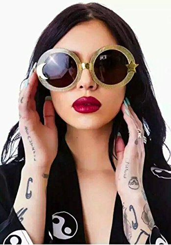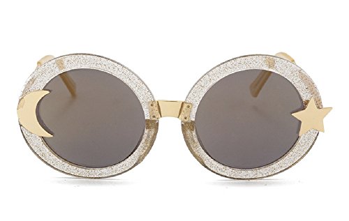 Nuni Women's Glitter Shell-effect Acetate Moon Star Accent Round Sunglasses