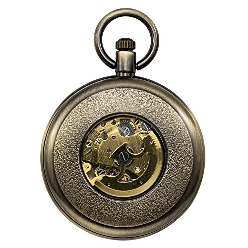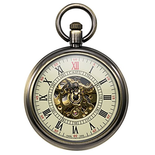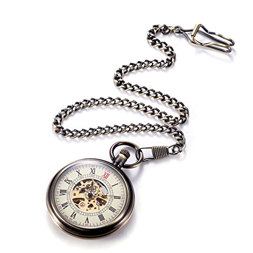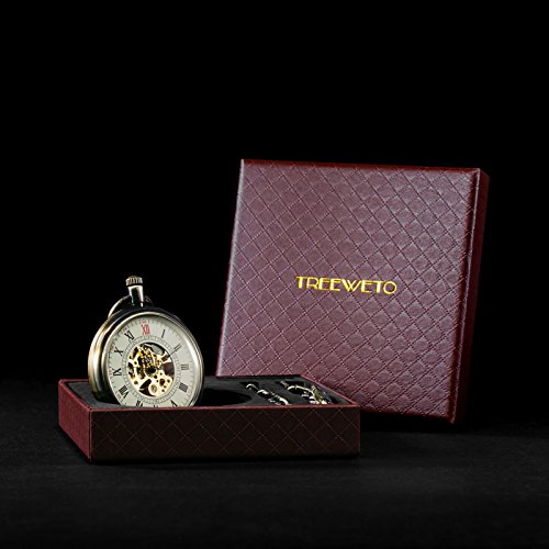 -. Feature : High Quality Open Face Design, with A Vintage Roman Numerals Skeleton Dial, looks very Elegant, Smart, Vintage and fashionable! / Precise jewel automatic mechanical movement,means flawless attention to time.17-jewel mechanical self-winding movement with an eye-catching skeleton dial and roman numerals,looks retro and elegant. / No need to use battery. Just need to twist the top button on the spin, tighten a walk for 24 hours. Please wind up the watch before every usage, Keep the watch away from magnet to avoid making the watch stop working. / This pocket watch includes a 14 inch steel curb chain that can attach to your belt loop, and come with unique TREEWETO brand gift box. / Perfect gift for your love and family or yourself, Best Valentine Gift, Superb Christmas Gift, Birthday Gift, Wedding Gift etc. For the working environment which is not allowed to wear wrist watch, like chef or nurse.