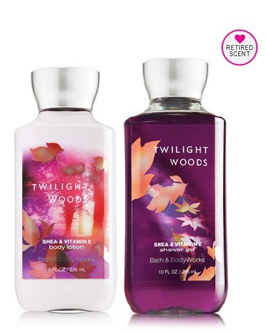 -. Binding : Misc. -. Brand : Bath & Body Works -. Feature : Shea Butter / Vitamin E -. IsAdultProduct : 0 -. MPN : Twilight Woods Duo -. PackageQuantity : 1 -. PartNumber : Twilight Woods Duo -. ProductGroup : Beauty -. ProductTypeName : BEAUTY -. Size : 8 Ounces -. Title : Bath & Body Works TWILIGHT WOODS Shea Enriched Gift Set 10 oz Body Wash and 8 oz Body Lotion