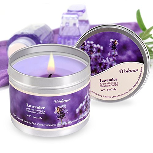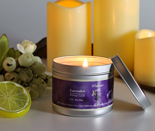 Robin-US Scented Candles Lavender Aromatherapy Candles Soy Wax Massage Candles Moisturizing For Spa,Skincare Massage and Stress Relief Natural Essential Oil Low Temperature Candles,6 oz/115g