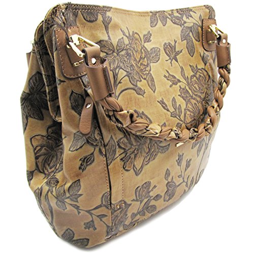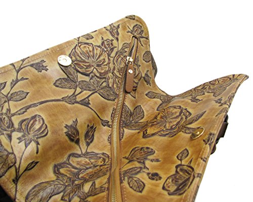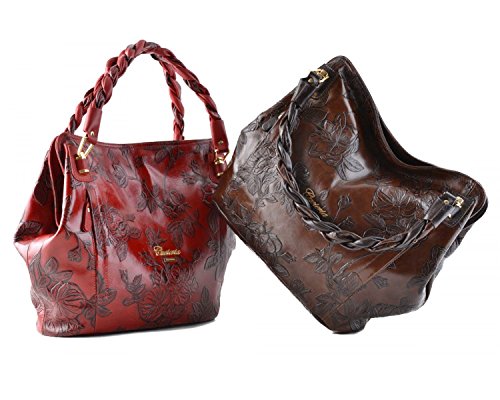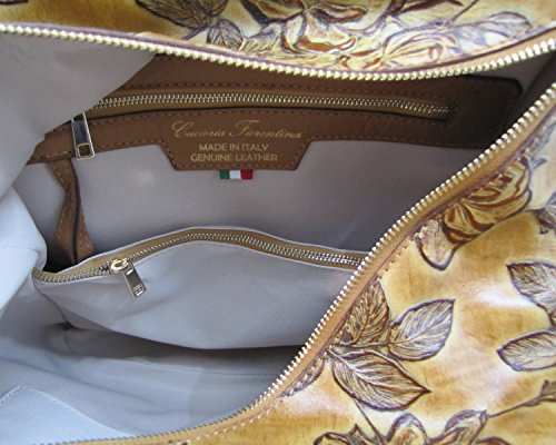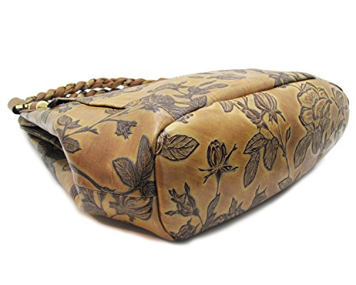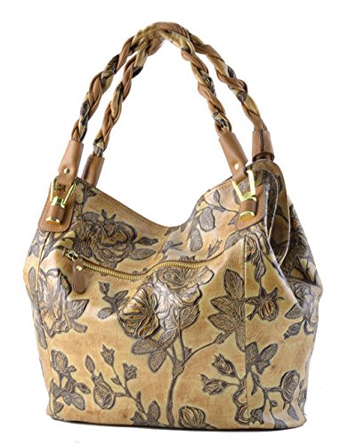 -. Brand : Cuoieria Fiorentina -. Department : womens -. Feature : Size: 15" L x 12" H x 5" W. Handle drop: 7". / Made in Italy. Italian embossed tooled leather with hand stitched detail. / Gold-tone hardware. Dual twisted handles. / Two front zip pockets. Back zip pocket. Zip closure. / Lined dual compartment separated by a zip top pocket. Interior zip and slip pockets. -. ProductGroup : Shoes -. ProductTypeName : HANDBAG -. Title : Cuoieria Fiorentina Italian Embossed Tooled Leather Hobo Handbag