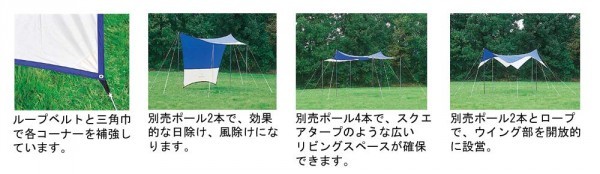 | 素材・材質 | タープ:ポリエステル150D(PU1000mm) ポール:スチールφ25mm×240cm |
