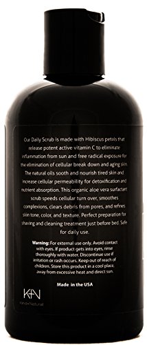 -. Feature : Our Daily Scrub is made with Hibiscus petals that release potent active vitamin C to eliminate inflammation from sun and free radical exposure for the elimination of cellular break down and aging skin / The natural oils sooth and nourish tired skin and increase cellular permeability for detoxification and nutrient absorption / This organic aloe vera surfactant scrub speeds cellular turn over, smoothes complexions, clears debris from pores, and refines skin tone, color, and texture. / Perfect preparation for shaving and cleaning treatment just before bed. Safe for daily use. / Risk Free - 100% Satisfaction Guaranteed with a 60 day return hassle free return policy.