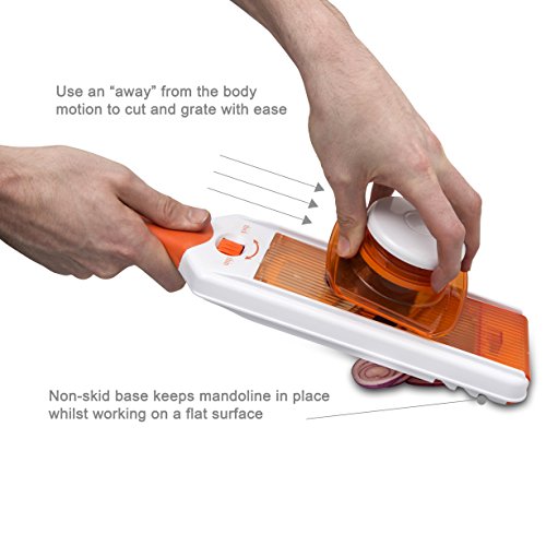 - Feature : ★ THIS DELUXE SET INCLUDES: Detachable Mandoline Slicer (Orange), Interchangeable Blades, Food Container Base, Safety Hat and Instruction Manual. / ★ BUY TODAY AND RECEIVE ALL 3 BONUSES: Mandoline Recipe Ebook, "The Best You" Ebook AND Video Tutorial - Absolutely FREE! This is the only Mandoline Slicer on the market offering so much value. So What are You Waiting For? Pick Up the Perfect Spiral Slicer, Vegetable cutter, Vegetable Grater All In One - Today! / ★ FULL HOMENATIVE WARRANTY - still not Satisfied? Let us Know and You Will be Offered a FULL Refund or Replacement - No Questions Asked! Enjoy this Absolutely RISK FREE. Purchase today by clicking the yellow "Add to Cart Button" Above / ★ 4 STAINLESS STEEL BLADES: Vegetable Slicer, Vegetable Grater, Fine Grater and Julienne Slicer! This Multi-Purpose Mandoline Slicer is Excellent for Use as Vegetable Cutter, Onion Slicer, Vegetable Peeler, Vegetable Chopper, Cheese Grater & Carrot Grater to Name a Few! The Fine Grater is Perfect for Grating Lemon or Orange Zest, as well as Being Used for Garlic, Nuts and Ginger! The Mandoline Slicer itself has Three Easily Adjustable Slice Thickness Settings: 1mm, 3mm & 5mm - Never Before has There Been So Much Flexibility when Cutting your Favourite Vegetables (Potato, Cucumber, Onion are a Breeze). Ultimately HomeNative's Mandoline Slicer Allows you to create that perfect cut, Every Time! / ★ EXTRA FEATURES - Soft Grip / Non-Skid Base to Keep Mandoline in Place Whilst Working on Flat Surface; Rotator Lock Keeps Blades Secure. Includes Safety Hat for Complete Protection. Easy to Clean- Simply Rinse Under Running Water or Place in Top Shelf of the Dishwasher. TOP TIP- Use the Julienne Slicer as a Spiralizer (or Tri Blade Slicer) to Create Long Noodle / Spaghetti Shape Vegetables! French Fry Maker with Potatoes, but Zucchini, Carrot and Butternut Squash are all Great for Julienne Slicer Function. Create Cool Paste-like Vegetables, Which are Great if You're on a Diet or Trying to Feed Your Children!