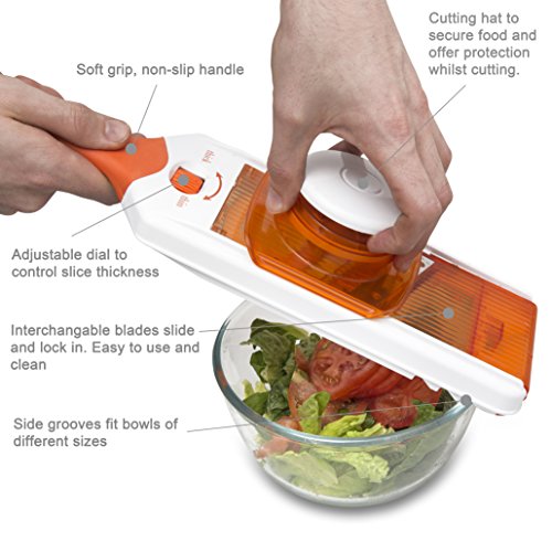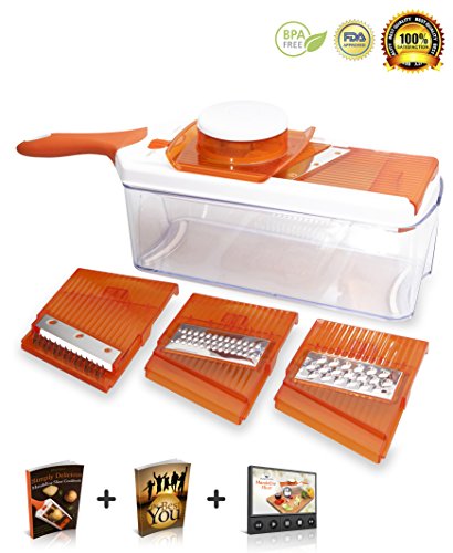 - Title : HomeNative® Adjustable Mandoline Slicer (Orange) - Comes with 4 Interchangeable Stainless Steel Blades - Vegetable Cutter, Peeler, Slicer, Grater and Julienne Slicer all in 1 - Plus 3 Bonus Gifts: "The Best You" Ebook, Mandoline Recipe Ebook & Video Tutorial
