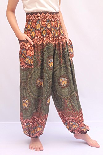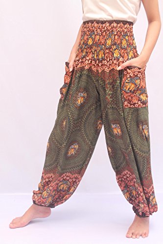 -. Title : ChiangmaiThaiShop Harem Pant Yoga Bohos Extra Size For Men & Women Elastic Waist smocks Rayon