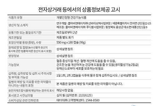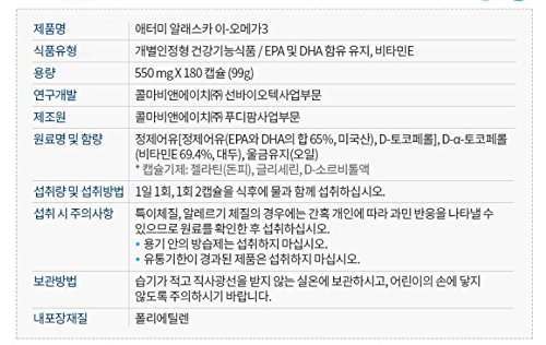 [Atomy] Atomy Alaska E-OMEGA 3 (180 capsules) Take 2 capsules daily People who want to improve neutral lipids, which is the cause of vascular damage People who want to maintain health, promote health and live a brisk life A person who needs unsaturated fat, People who do not usually eat fish Anxious about the health of blood, People who use computers and smartphones for a long time People who want moist eyesFeature
