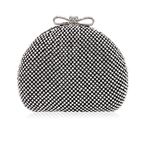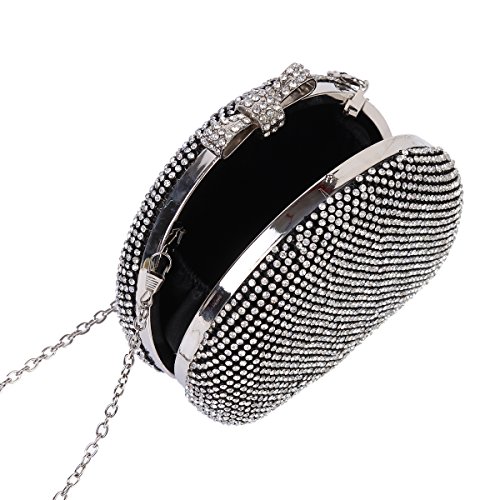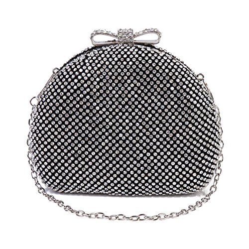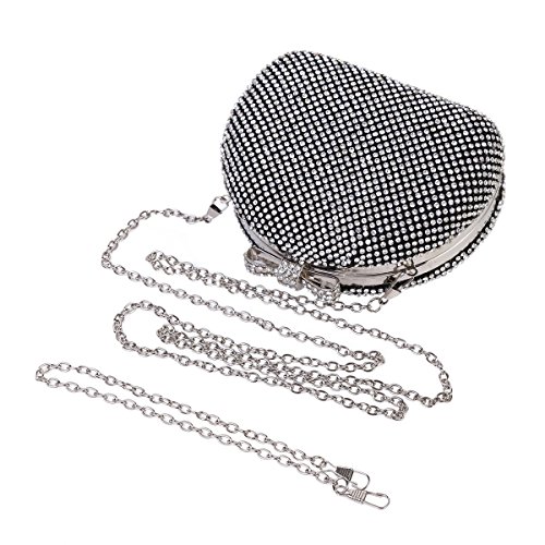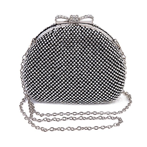 Product Description Chic and stylish clutch completes both your day and night look for any occasions.The fully crystal evening bag features sparkling crystals on the front and back of this chic shaped clutch and has metal frame construction with a metal bowknot with rhinestone clasp on the top.This clutch offers enough room for your cell phone, lipstick, compact mirror, and one or two other essential items.2 detachable?chain offer a versatile carrying option when you want to keep your hands free.Purse measurement is app 12x11x6cm (4.72x4.33 x2.36 in),long chain is app 120cm(47.24inch),short one is app 40cm (15.74inch) 0