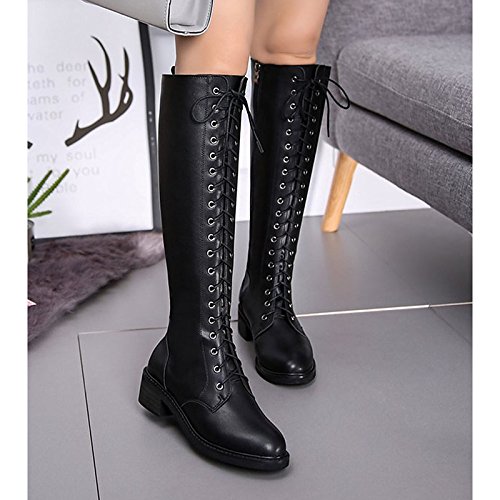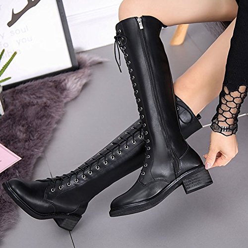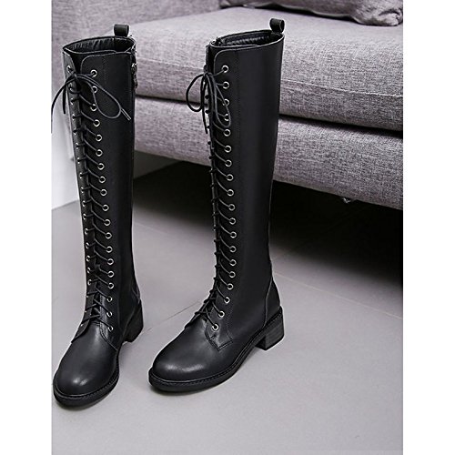(ZHZNVX)/Women's/Boots/DIRECT FROM USA/HSXZ Women's Shoes PU Winter Combat Boots Boots Chunky Heel Round Toe Knee High Boots for Casua...