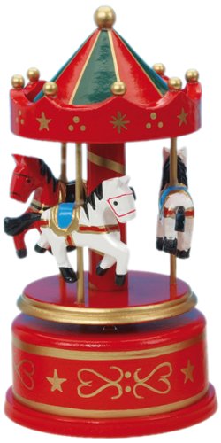 MusicBox Kingdom 16008 170mm Carousel Music Box Playing "Bolero", Red/Green