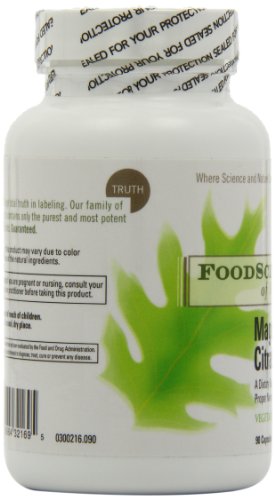 -. Feature : Aids the body in maintaining proper pH balance, healthy blood pressure and normal body temperature.* / Supports proper nerve and muscle functions.* / FoodScience of Vermont's Magnesium Citrate is doctor formulated. / Gluten free, vegetarian, and made with non-gmo ingredients. 90 servings / Packaging may vary