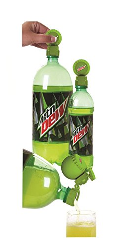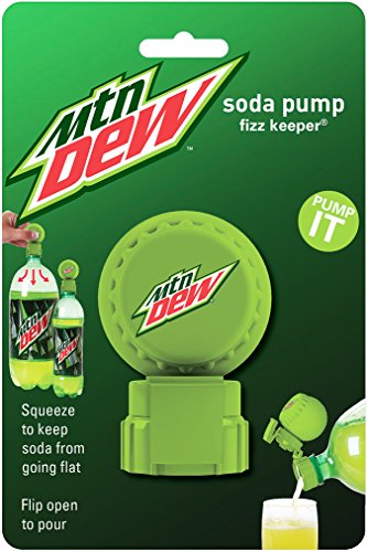 Jokari 3 Count Mtn Dew Modern Logo Fizz Keeper Soda Bottle Pump and Pour Caps, Green