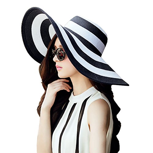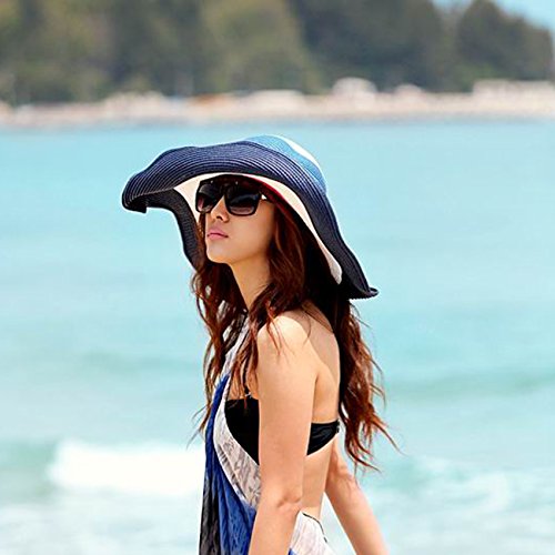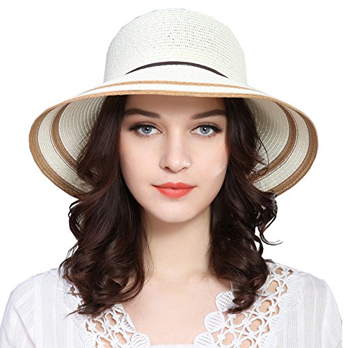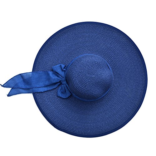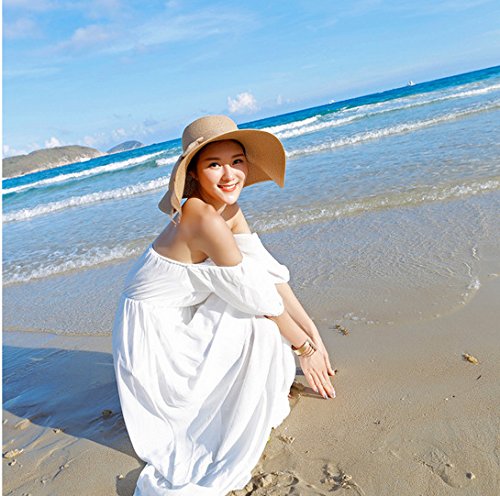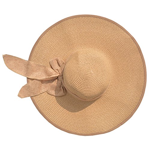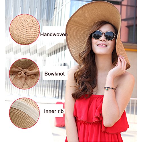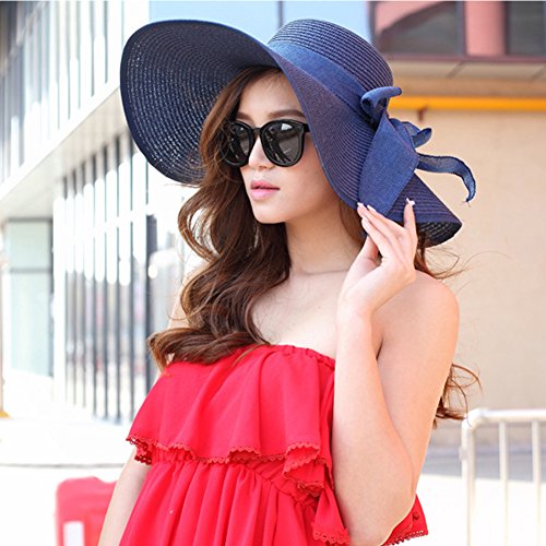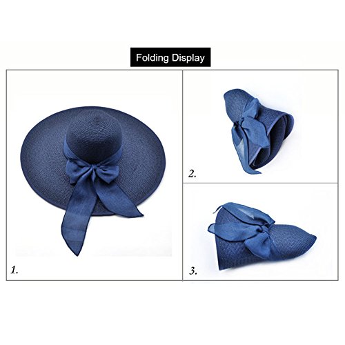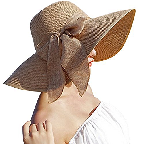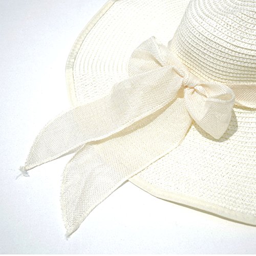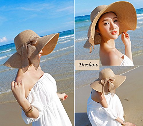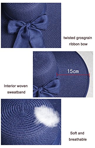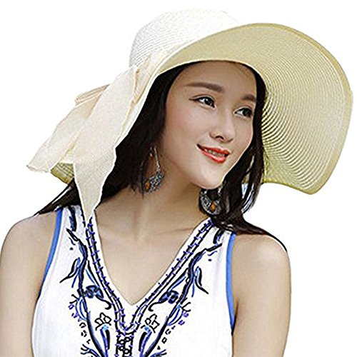 | Womens Big Bowknot Straw Hat Floppy Foldable Roll up Beach Cap Sun Hat UPF 50 |
