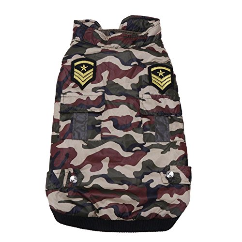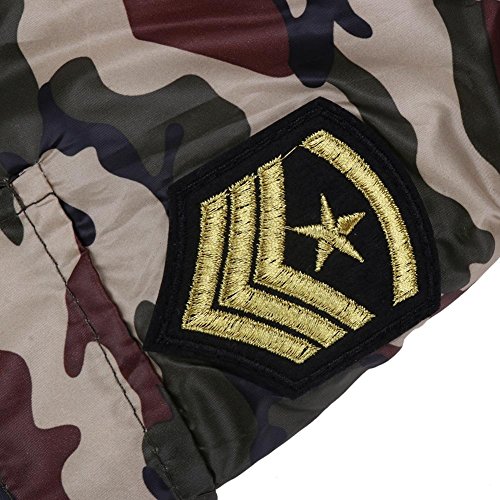 -. Feature : Fashion camouflage pet dog coat . / Army green thread, keep warm. / Cotton-padded, keep warm. / Buckle designed, easy to wear. / Suitable for wearing outside in autumn and winter.