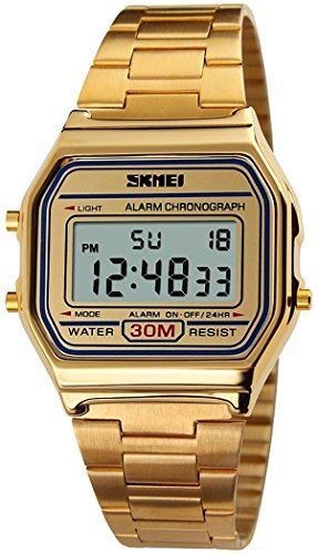 -. Title : Fanmis Women's Men's Digital Electronic Sport Watch Multifunction Waterproof Daily Alarm Gold-tone Watch