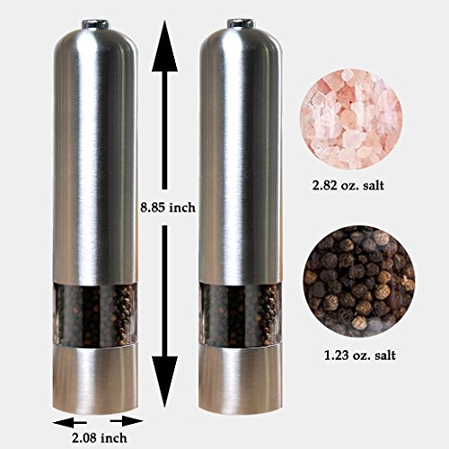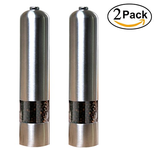 PER-HOME Stainless Steel Automatic Electric Pepper Mill and Salt Grinder(2 Set Packing)