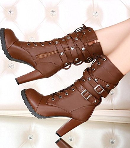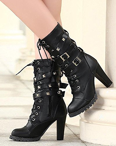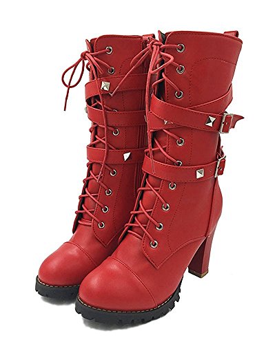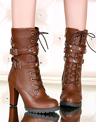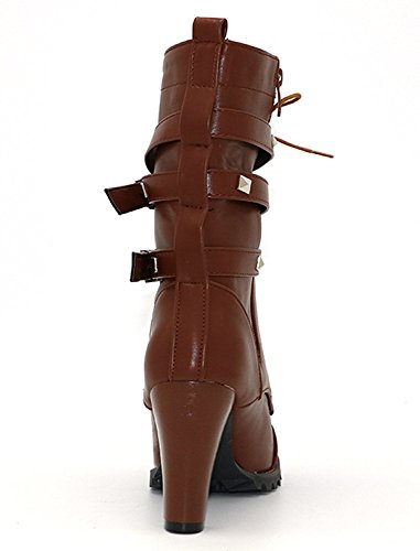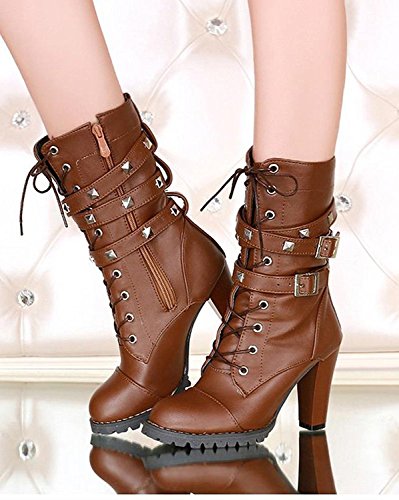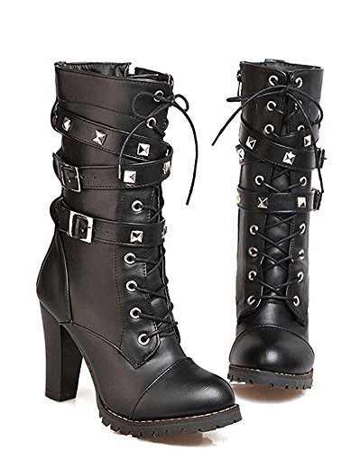 Maybest Womens Ladies Mid Calf Boots Fold Over Long Stretch Winter Leather Shoes Knee Long Bloc...