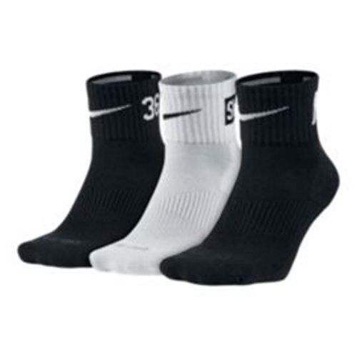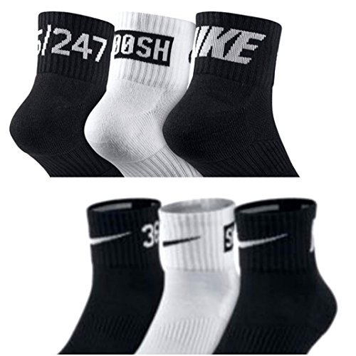 -. Binding : Apparel -. Brand : -. Color : Black/White -. Department : mens -. EAN : 0600152182762 -. Feature : Get your feet fashion forward and stock up with our 3-piece pack of snazzy crew socks. No other socks can keep your feet as snug or sweat free. reinforced toe and heel Dri-FIT fabric moisture wicking cotton/nylon/polyester/spandex package of 3 pair / Dri-FIT fabric pulls sweat away from the skin for high-performance comfort / Supportive Fit with Arch Compression // Reinforced Heel and Toe For Enhanced Durability! / Color: 2 PAIR Black/1 PAIR White-Black with Classic "365/24/7"-White with "JUST DO IT"-Black with "" Calf Worded Logos / Size: MEDIUM (6-8) Men's / (6-10) Women's--UNISEX -. IsAdultProduct : 0 -. ProductGroup : Sports -. ProductTypeName : SPORTING_GOODS -. Size : MEDIUM (6-8) Men's / (6-10) Women's--UNISEX -. Title : Dri-Fit Cotton Cushioned Fly Rise V4 Quarter Cut Athletic Socks 3 PAIR (Black/White) MEDIUM -. UPC : 600152182762